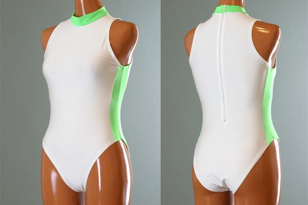 ハイネックシェイプラインレオタード【ホワイト×ライム】