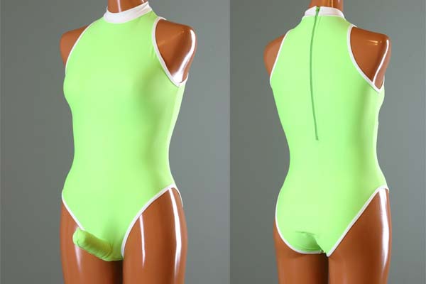 ハイネックmixカラーレオタード【ライム×ホワイト】