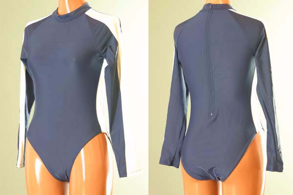 【70%オフ】長袖シェイプラインレオタード【ネイビー×ホワイト】