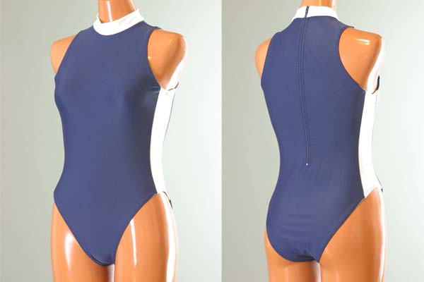 ハイネックシェイプラインレオタード【ネイビー×ホワイト】