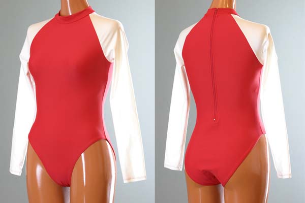 長袖シェイプアップレオタード【レッド×ホワイト】
