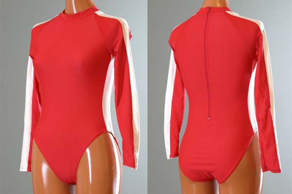 【70%オフ】長袖シェイプラインレオタード【レッド×ホワイト】