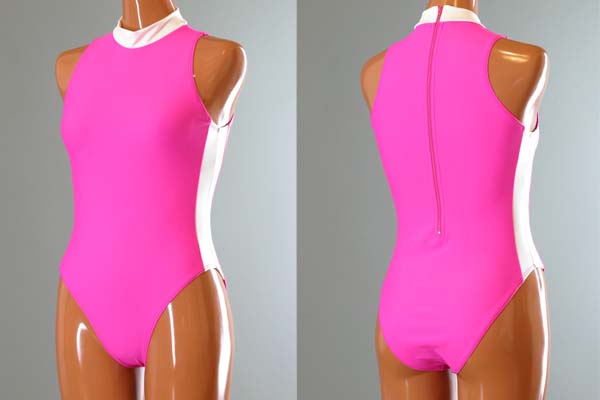 ハイネックシェイプラインレオタード【ピンク×ホワイト】