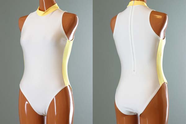 ハイネックシェイプラインレオタード【ホワイト×イエロー】