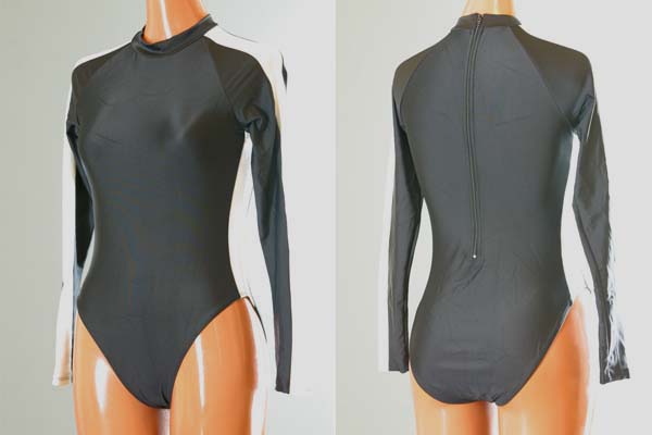 長袖シェイプアップレオタード【ブラック×ホワイト】
