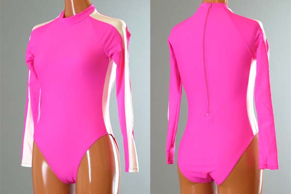 【70%オフ】長袖シェイプラインレオタード【ピンク×ホワイト】