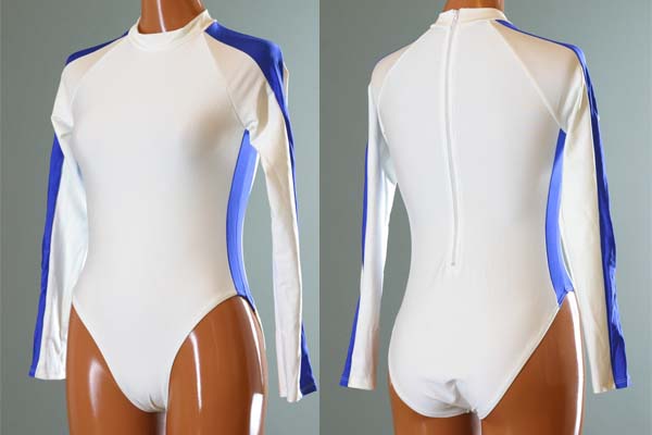 【70%オフ】長袖シェイプラインレオタード【ホワイト×ブルー】