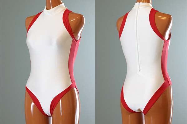 ハイネックシェイプアップレオタード【ホワイト×レッド】
