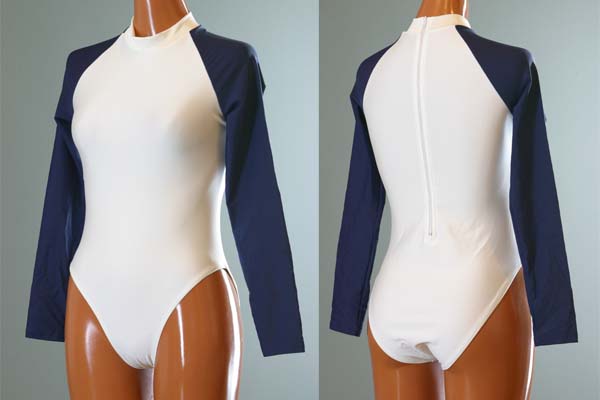 長袖シェイプアップレオタード【ホワイト×ネイビー】