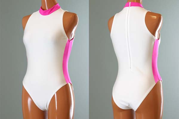 ハイネックシェイプラインレオタード【ホワイト×ピンク】
