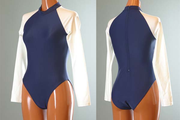 長袖シェイプアップレオタード【ネイビー×ホワイト】