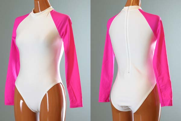 長袖シェイプアップレオタード【ホワイト×ピンク】