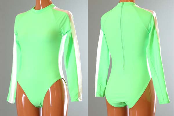 【70%オフ】長袖シェイプラインレオタード【ライム×ホワイト】