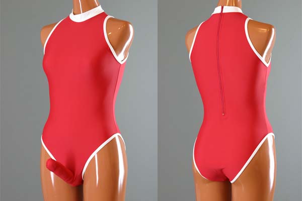 ハイネックmixカラーレオタード【レッド×ホワイト】