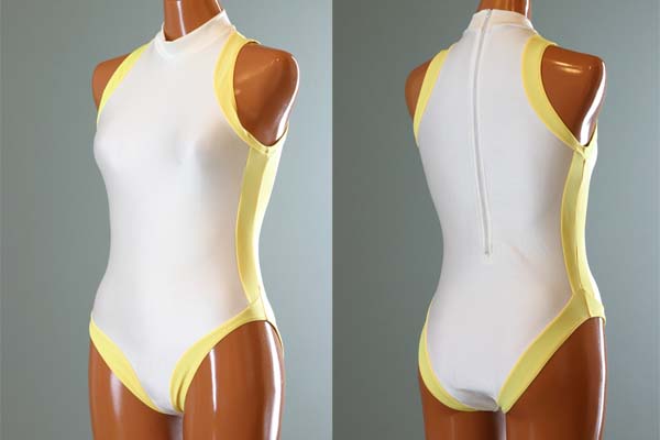 ハイネックシェイプアップレオタード【ホワイト×イエロー】